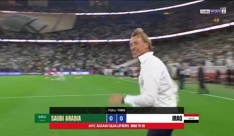 لحظة إطلاق صافرة نهاية مباراة العراق والسعودية وإعلان تأهل السعودية إلي كأس العالم