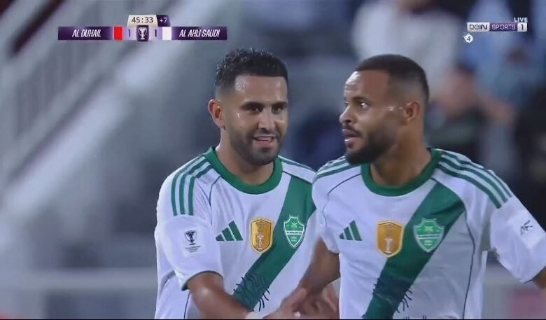 شاهدوا هدف رياض محرز الغريب والعجيب في مرمي الدحيل القطري اليوم وردة فعل وصدمة المدرب جمال بلماضي