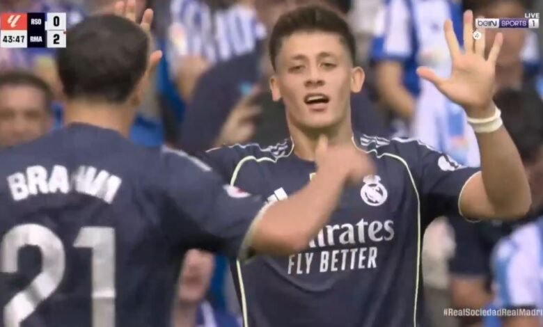 شاهدوا هدف ريال مدريد السينمائي الخرافي في مرمي ريال سوسيداد وفرحة جنونية هيستيرية بين المغربي براهيم دياز واردا جولر وكيليان مبابي إحتفالاً بهذا الهدف الإستثنائي.