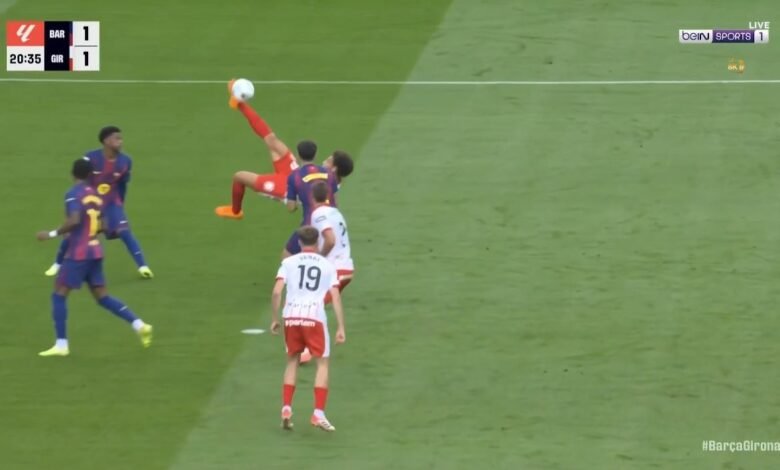ِشاهد المقصية التاريخية التي سجلها لاعب جيرونا أمام برشلونة في الدوري الاسباني اليوم