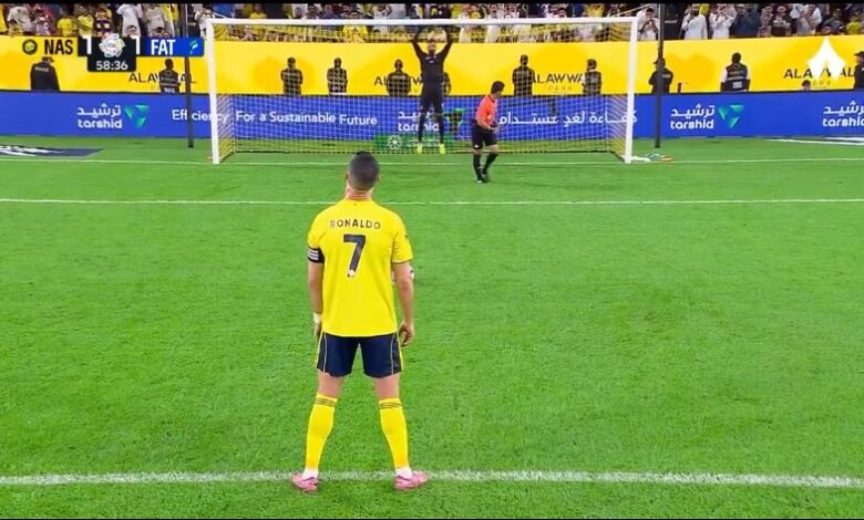 فيديو ركلة جزاء كريستيانو رونالدو الضائعة أمام الفتح بالدوري السعودي اليوم