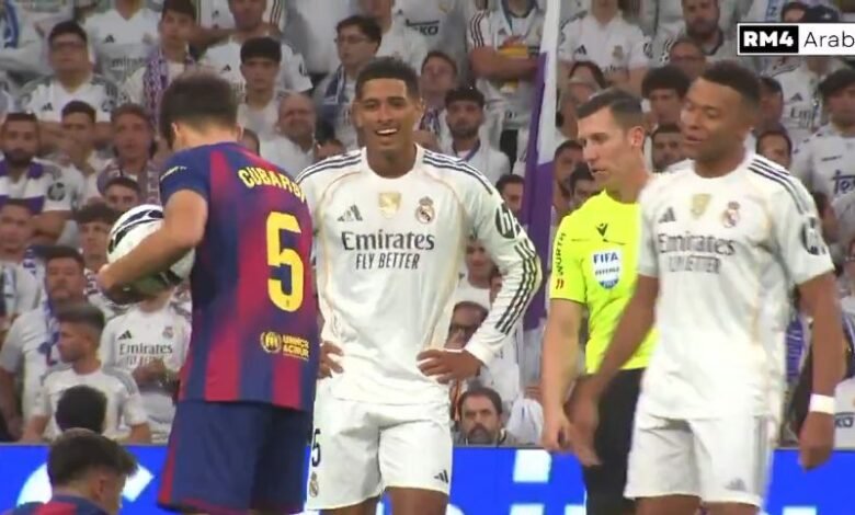 المشهد العجيب الذي هزَّ ورج إسبانيا بأكملها، وأحدث ضجة مدوية بسبب ما جرى بين بيلينغهام لاعب ريال مدريد وبيدري، لاعبِ برشلونة، في هذه اللقطة التي تصدَّرت جميع العناوين.